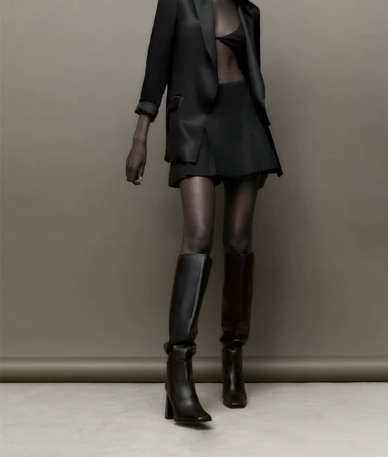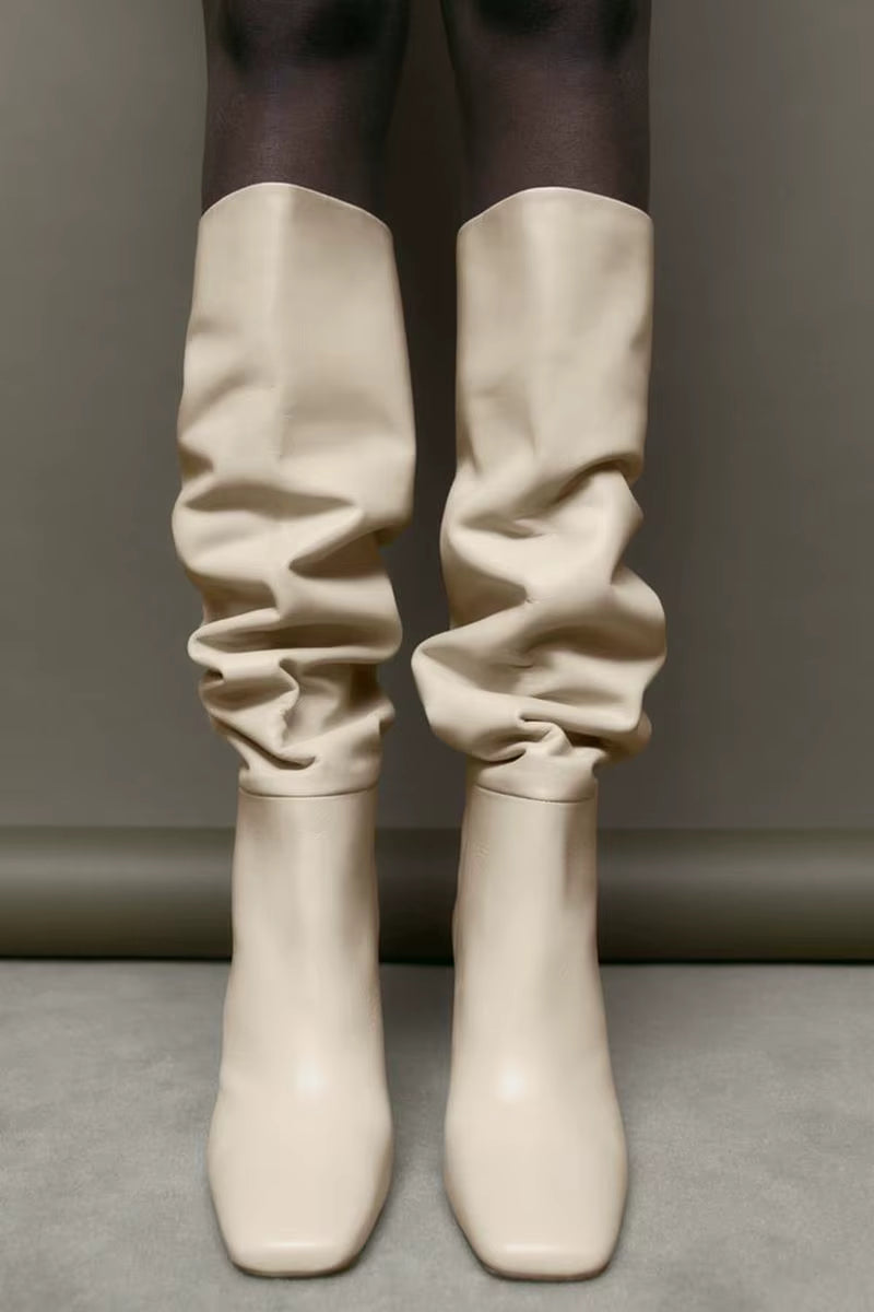 Diese kniehohen Damenstiefel aus hochwertigem Rindsleder überzeugen durch ihre elegante, spitz zulaufende Form und den stabilen Blockabsatz. Das Slip-On Design erleichtert das Anziehen, während das kurze Plüschfutter für angenehme Wärme sorgt – ideal für kalte Wintertage. Die klare, moderne Silhouette verleiht den Stiefeln einen zeitlosen Charakter, der sich sowohl zu eleganten als auch zu schlichten Alltagslooks kombinieren lässt. Dank der leichten Plateausohle bieten die Stiefel zusätzlichen Komfort, ohne auf Stil zu verzichten.